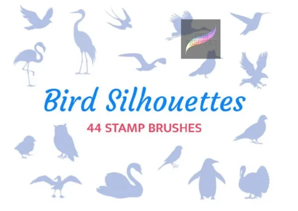 44 Unique Stamps: A huge collection of bird shapes for instant use.