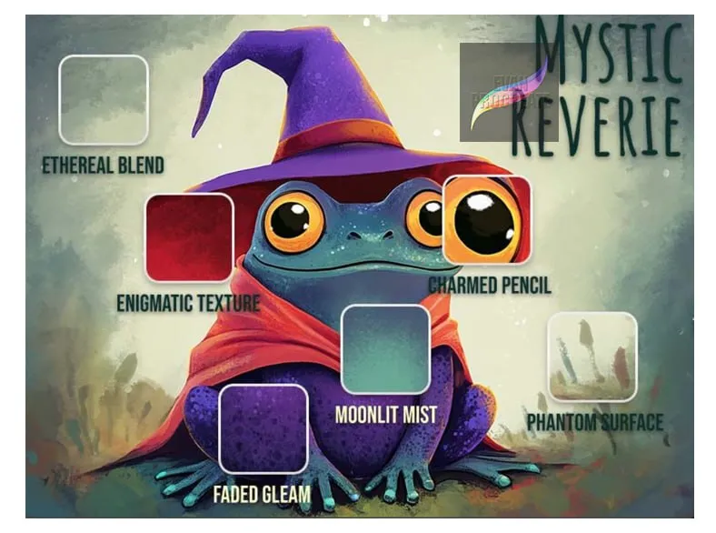 As demonstrated by the adorable wizard frog in the preview, these tools cover every aspect of a magical illustration. You can lay down crisp, expressive lines with the “Charmed Pencil,” then build up rich, organic surfaces using “Enigmatic Texture” and “Faded Gleam”. The set excels at creating mood; brushes like “Moonlit Mist” and “Ethereal Blend” allow you to paint soft lighting and foggy backgrounds that give your art a dreamy, mysterious quality.