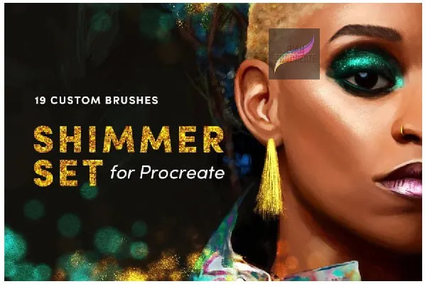 Download the Shimmer Set Procreate Brushes! Includes 19 custom tools for realistic makeup, gold jewelry, and glitter effects.